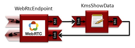This application shows an example on the use of WebRTC Data Channels with Kurento. The Media Pipeline is composed by a WebRtcEndpoint connected to a KmsShowData. This Media Element is a test element aimed to show the capabilities of Kurento Media Server for Data Channels. Internally it is able to read the data received on the Data Channels. In addition it uses a GStreamerFilter configured to overlay the read text in the media stream. Finally, the KmsShowData is connected again to the same WebRtcEndpoint, closing the loopback. In the client side the WebRtcPeer is setup in receive-only mode, and the user is able to introduce text that is sent to the server by means of Data Channels Metadata. To run this demo follow these steps: