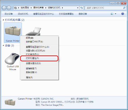 ”(开始)菜单中选择“设备和打印机”。