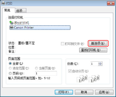 设备” → 正在使用的打印机 → “打印。如果以此方式进行打印,只能设置部分打印功能。 |