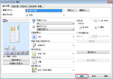 “完成方式”(或“基本设置”)选项卡中“打印样式”的默认设置为“双面打印”。但是,有些打印机驱动程序版本的默认设置为“单面打印”。有关如何将打印模式设置为单面打印的详细信息,请参阅打印机驱动程序帮助或随打印机提供的手册。